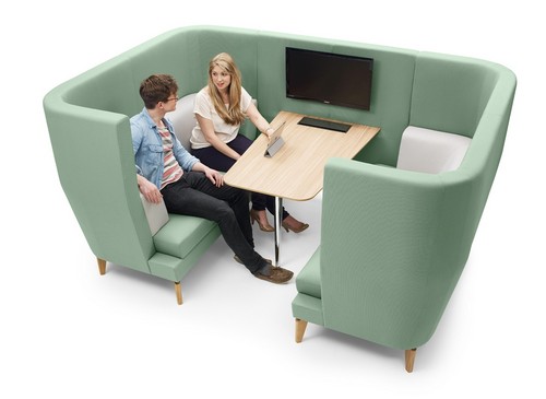 We offer a great range of open work booths that offer a collaborative focus point in the office. Available to seat 2, 4 or 6, the Stream Meeting Pod is a highly popular option. If you’re looking for an enclosed pod, opt for a pod like the Kabin 2 Work Pod, which features a fold down seat for a second occupant. Or for the ultimate in flexibility, choose a work booth for two on easy-to-move castors such as the cool and quirky Cabana Mobile Meeting Pod.