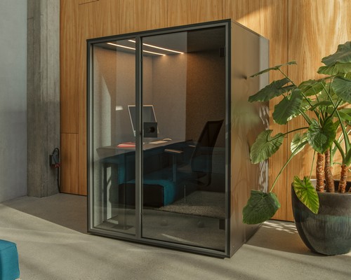 The Berlin Acoustics WORK Booth provides employees with a mini-office, ideal for focused and uninterrupted work sessions.